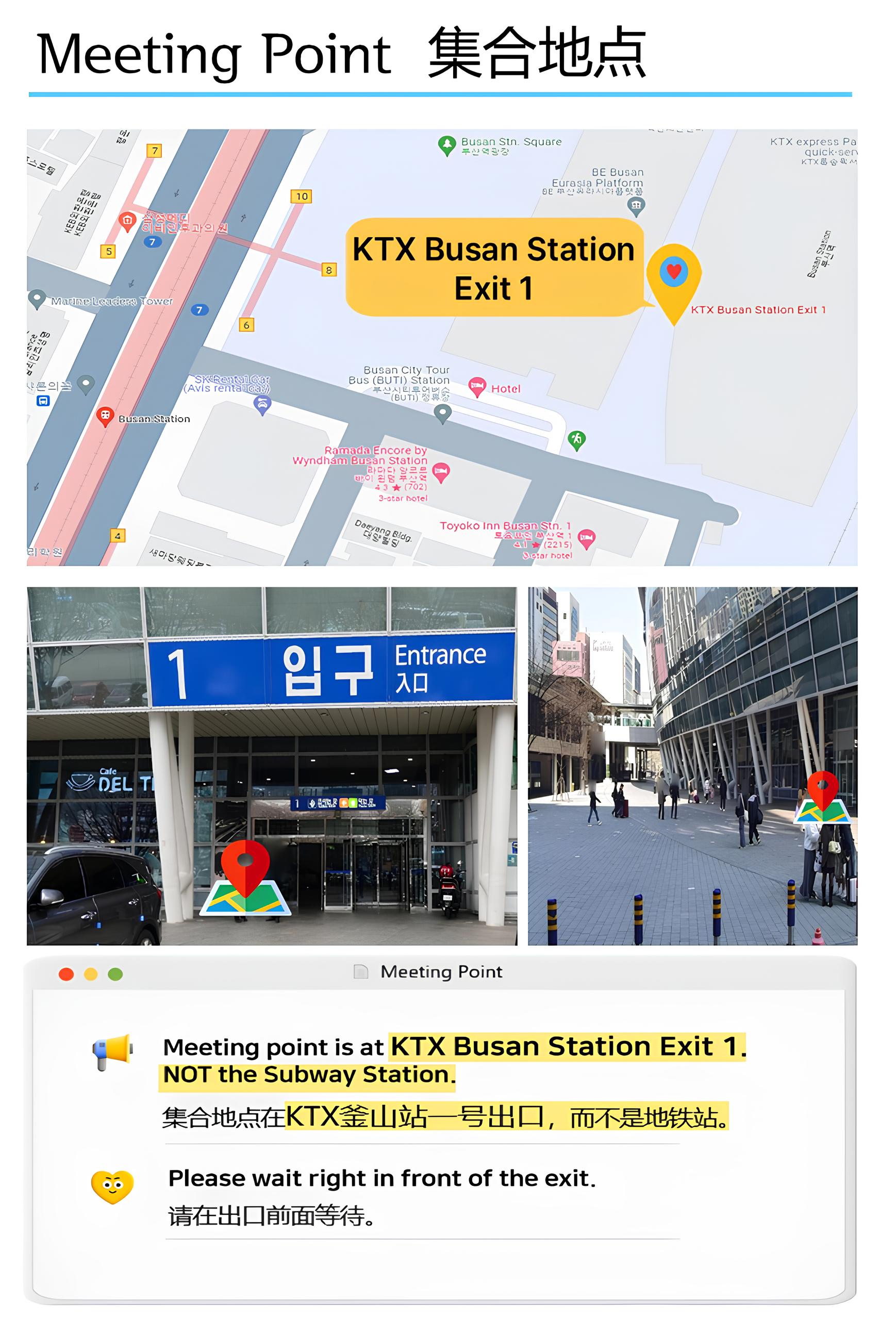 | 23:00 | Busan KTX Station Exit 1 |