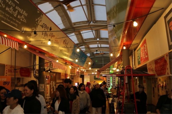 A lively riverside night market near Chokseokru Pavilion, offering street food, local specialties, and cultural performances. Perfect spot for dinner before the lantern festival.