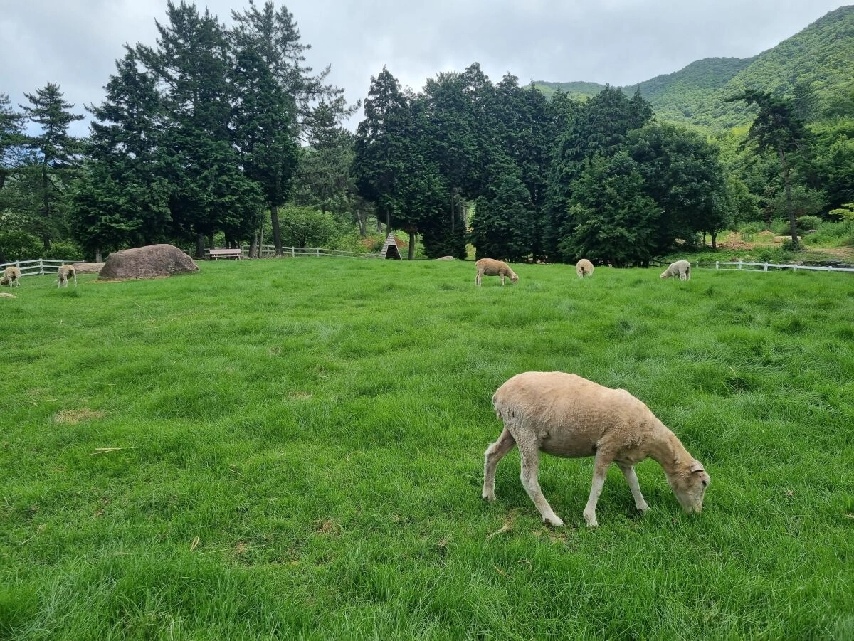 Start your refreshing morning at Yangmarte Hill, a cozy ranch nestled within a lush cypress forest. Feel the pure energy of nature as you spend a peaceful time feeding gentle sheep in the crisp morning air.