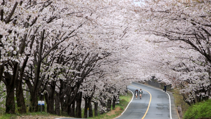Hadong Simni (10-Ri) Cherry Blossom Road Step into a fairytale on the Simni Cherry Blossom Road, a breathtaking 4km tunnel of blooming cherry trees. Also known as the "Marriage Road," it is said that couples who walk hand-in-hand here will fall in love and stay together forever. Enjoy a romantic stroll under a canopy of soft pink petals for an unforgettable spring memory.
