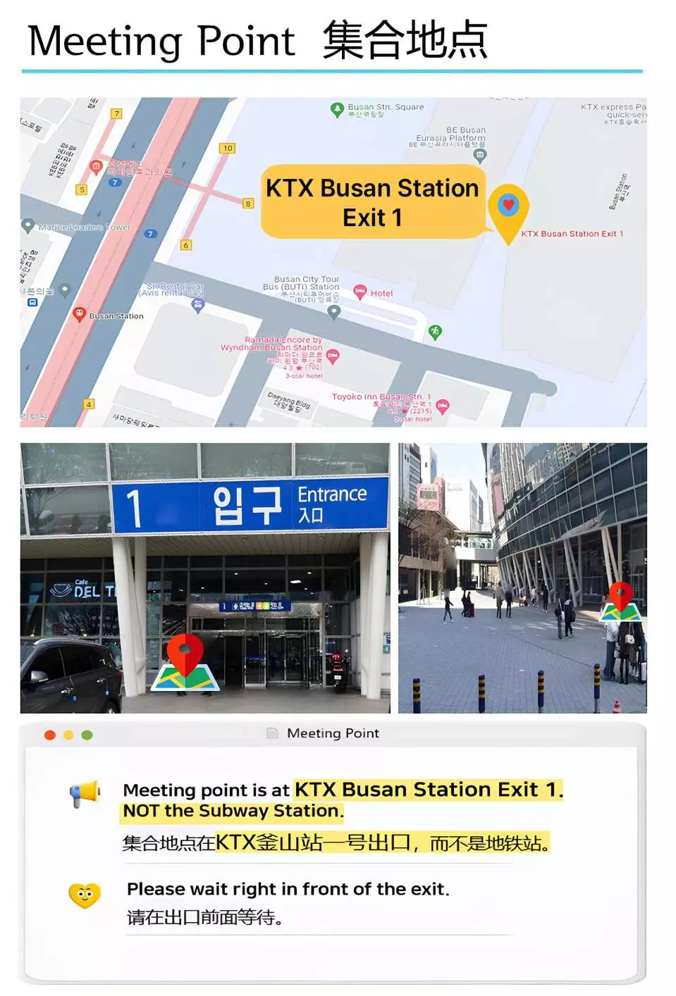 | 17:00 | Busan KTX Station Exit 1 |