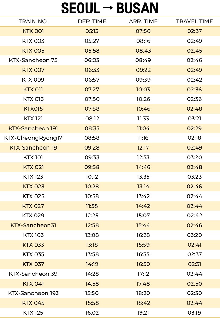Route: Seoul Station → Busan Station (one way)