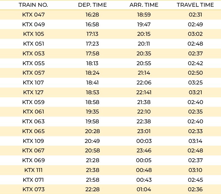 One-way KTX ticket from Seoul to Busan