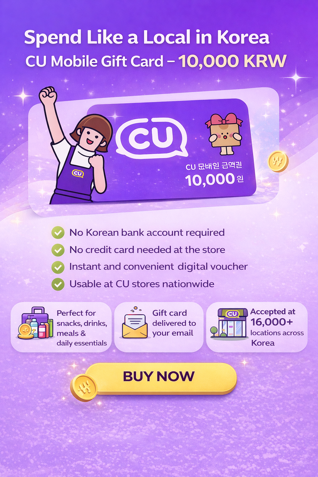 The CU Mobile Gift Card is a digital voucher that can be used like cash at CU convenience stores across Korea.