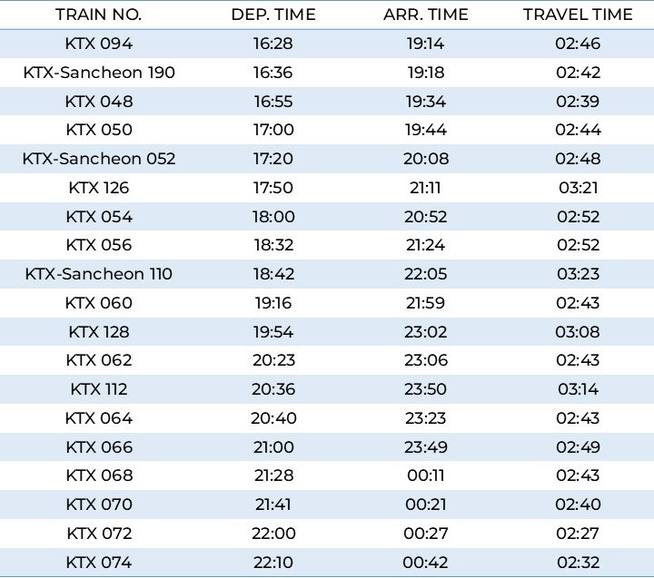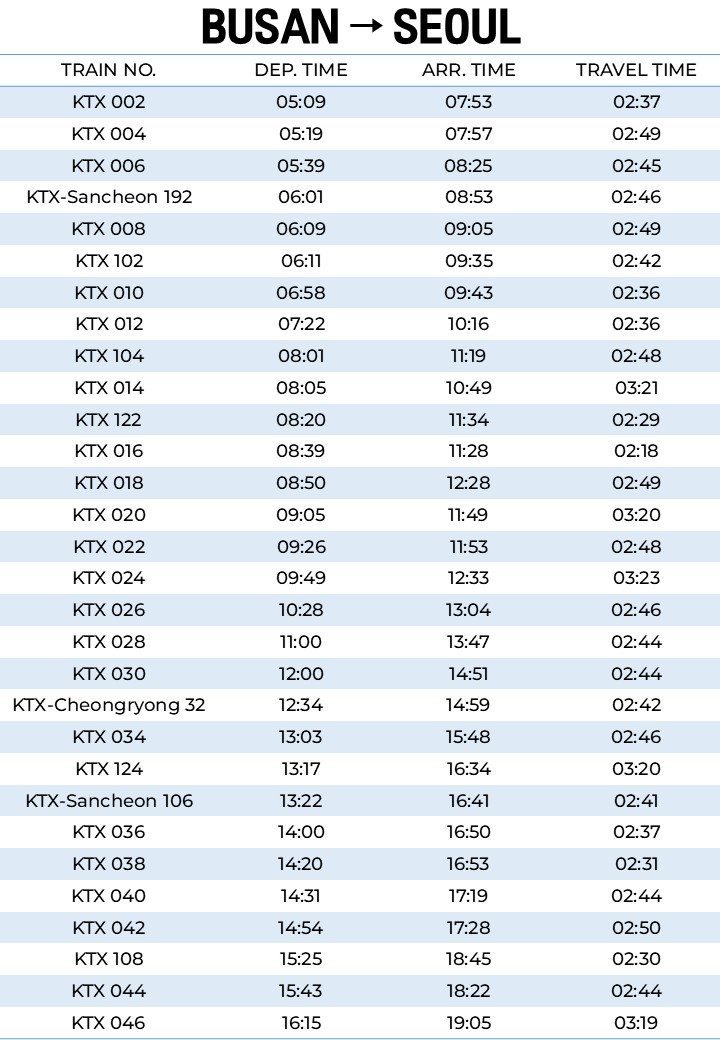 Multiple daily departures from Busan to Seoul